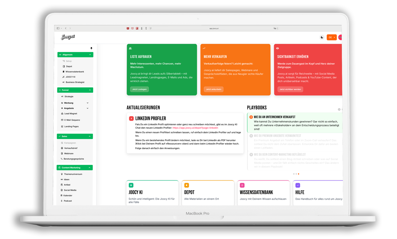 Mit Joocy.ai arbeitest du kreativer, schneller, strukturierter und erfolgreicher – und hast endlich ein System, das wirklich für dich denkt und wirkt.